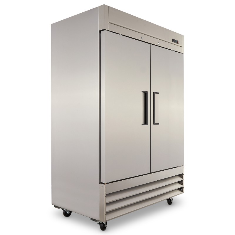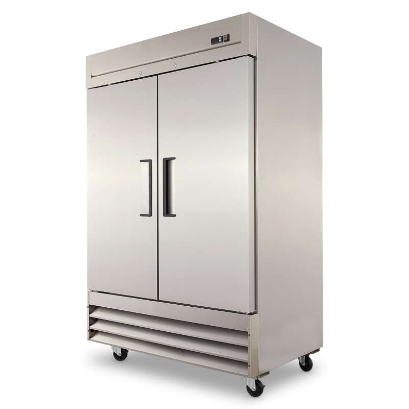 Refrigerador vertical de 2 puertas con capacidad de 47 pies3, construcción robusta en acero inoxidable para brindar una mayor resistencia y durabilidad.