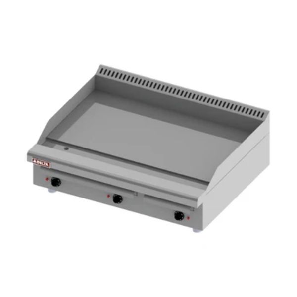 Plancha elctrica mca. Delta, mod. 3-GÐE chamusca.nMaterial: acero inoxidable.nEquipada con: plancha de coll rolled de 1/2″.n3 resistencias de acero inox. de 3,350 watts cada una.nTermostatos de con rango de 50¡ a 300 ¡C.nFocos piloto para cada resistencia.nCharolas recolectoras.nPanel de controles desmontable.nCapacidad termica: 220 volts, 10,050 watts y 45 amps.n3 Lneas.nDimensiones: 93 x 76 x 26 cmn nnPro: fabricado totalmente en acero inoxidable T-304.nnTop: fabricado totalmente en acero inoxidable T-430.nnMix: fabricado el frente, costados en acero inoxidable 430 con respaldos e interiores en acero aluminizado.